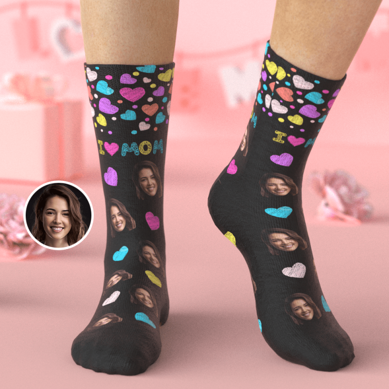 Personalized Face Socks Gifts for Mom I Love Mom Colorful Heart