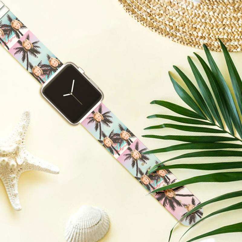 Personalized iWatch Bands With Face Watch Band Gift - Palm Tree Hawaiian Style
