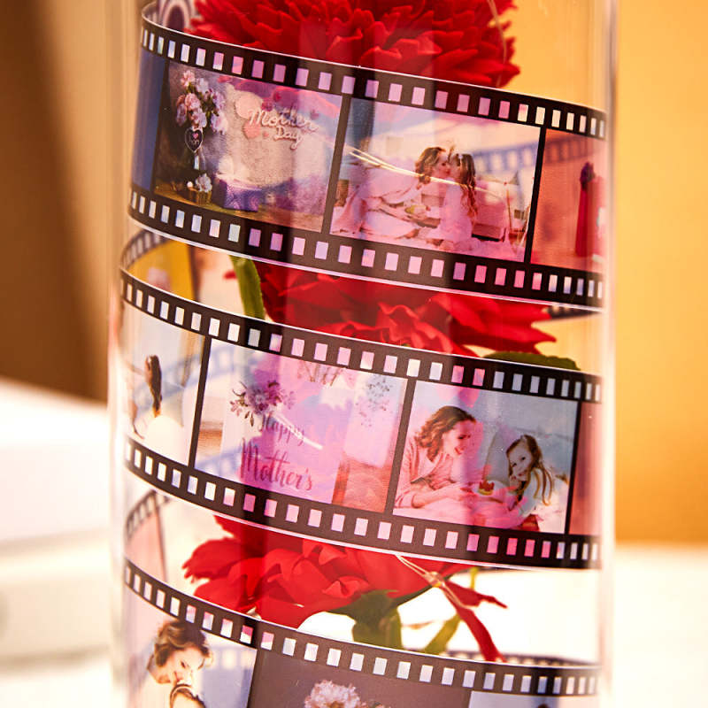 - Red carnations symbolize worship, passionate love, expressing thoughts, and wishing mothers a long and healthy life. It can also be used as an elegant home decor item for your dining room shelf! You can put film in roses and turn "precious memories" into the most exquisite keepsakes. 5-20 pictures can be customized, please upload a rectangular picture, otherwise it is easy to cut off the text or background when customizing.