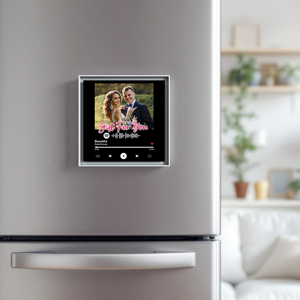 Customized Romantic Singing Refrigerator Magnet - The Best Gift Bring your favorite music to life with our Customized Album Fridge Magnet! This innovative magnet is more than just a decorative piece; it's a functional, interactive device that lets you play your favorite songs directly from your fridge. Whether you want to listen to a relaxing playlist while cooking or enjoy your favorite music while grabbing a snack, this fridge magnet makes it all possible.