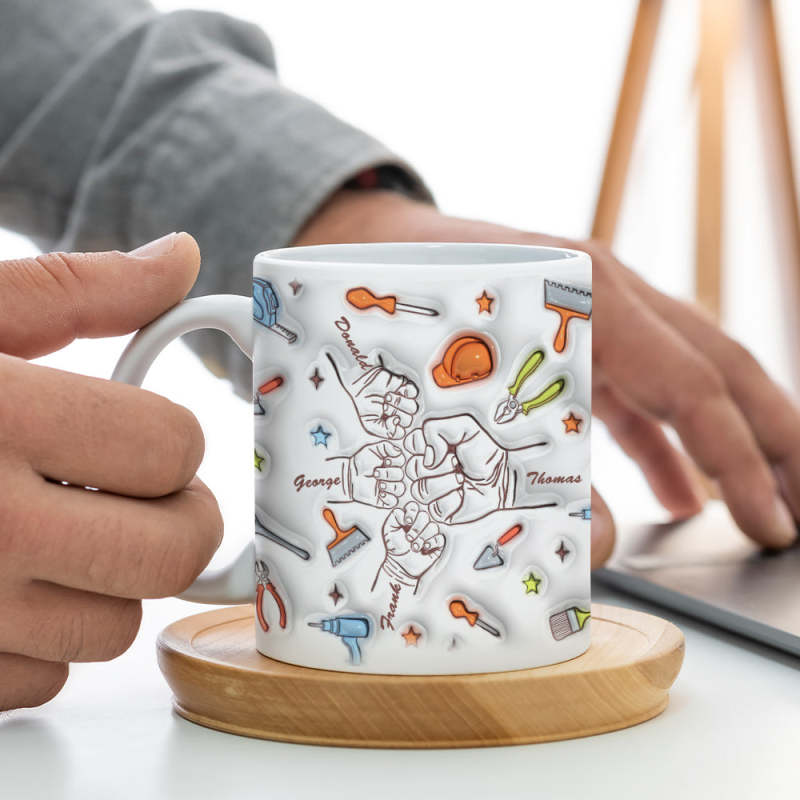 Personalized Names Custom 1-6 Kids 3D Inflated Effect Printed Mug Gift for Father Grandpa