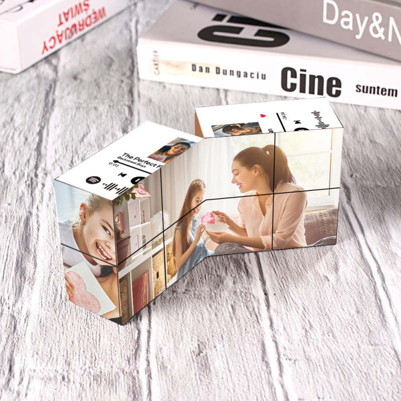 Personalized Photo Cube Magic Picture Cube with Spotify Code Gift For Mum