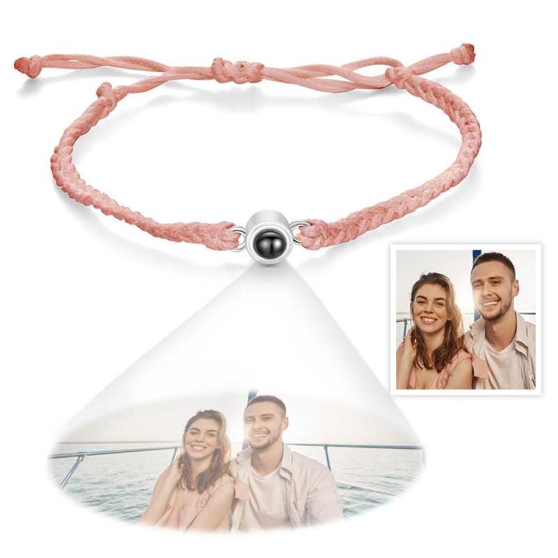 Personalized Photo Projection Couple Bracelet Braided Black Rope Bracelet Gift For Lovers