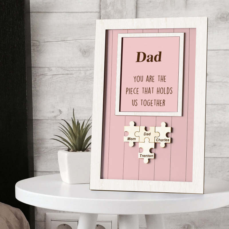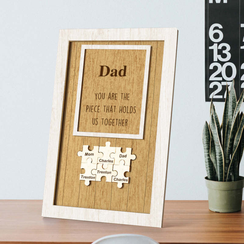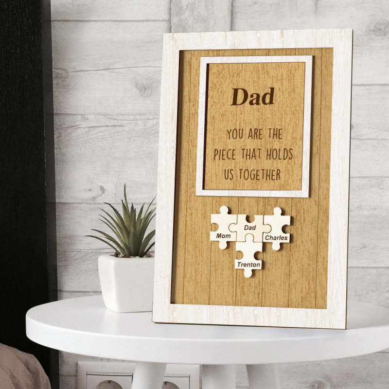 The puzzle sign is the perfect gift for the dad who connects the family together. It can be customized with 3 - 6 puzzle pieces. You will feel connected to them. This will be the perfect keepsake!