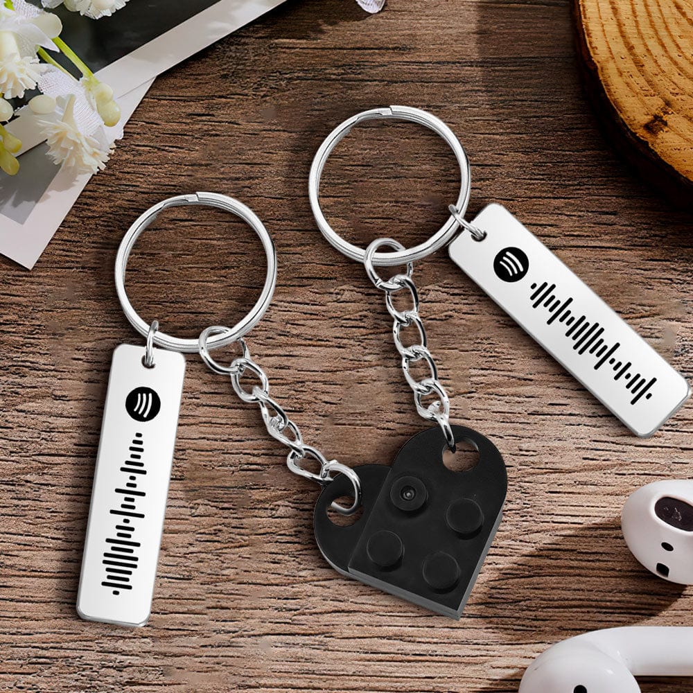 Personalized Spotify Code Matching Couples Love Heart Bricks Keychain for Couples