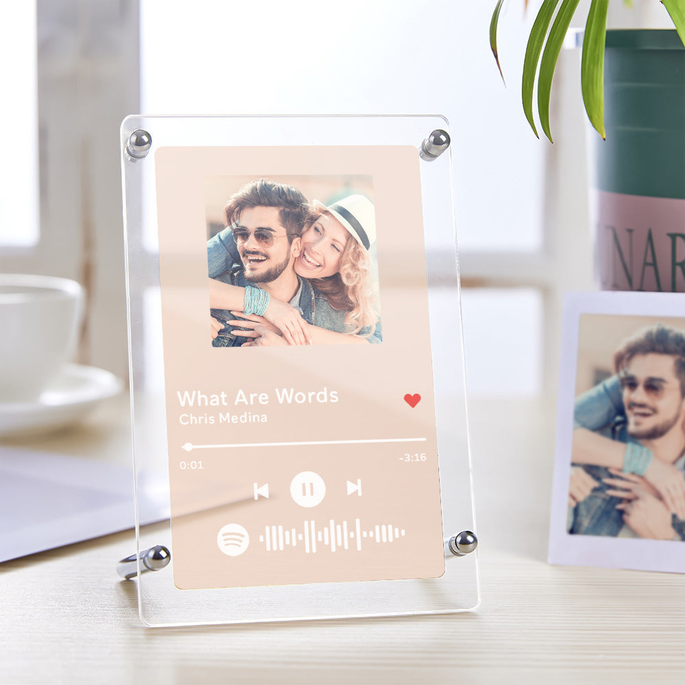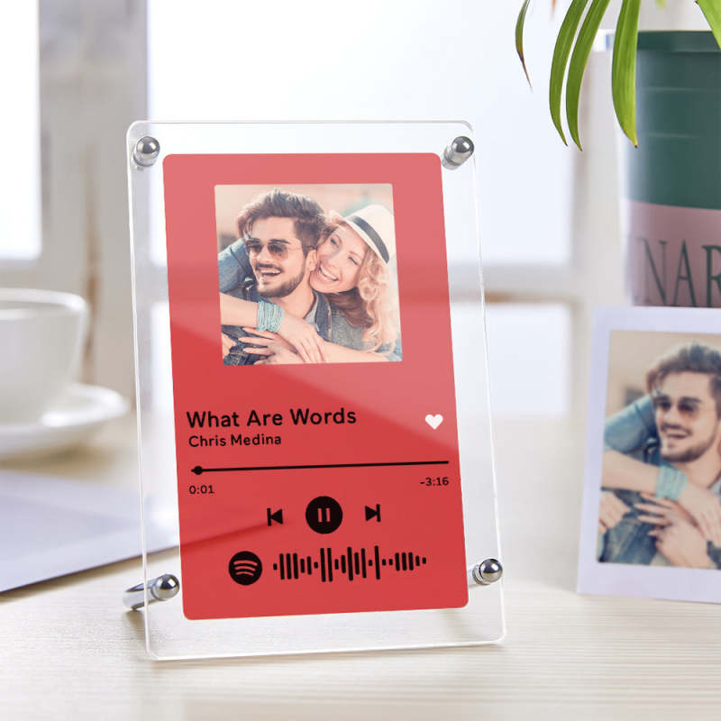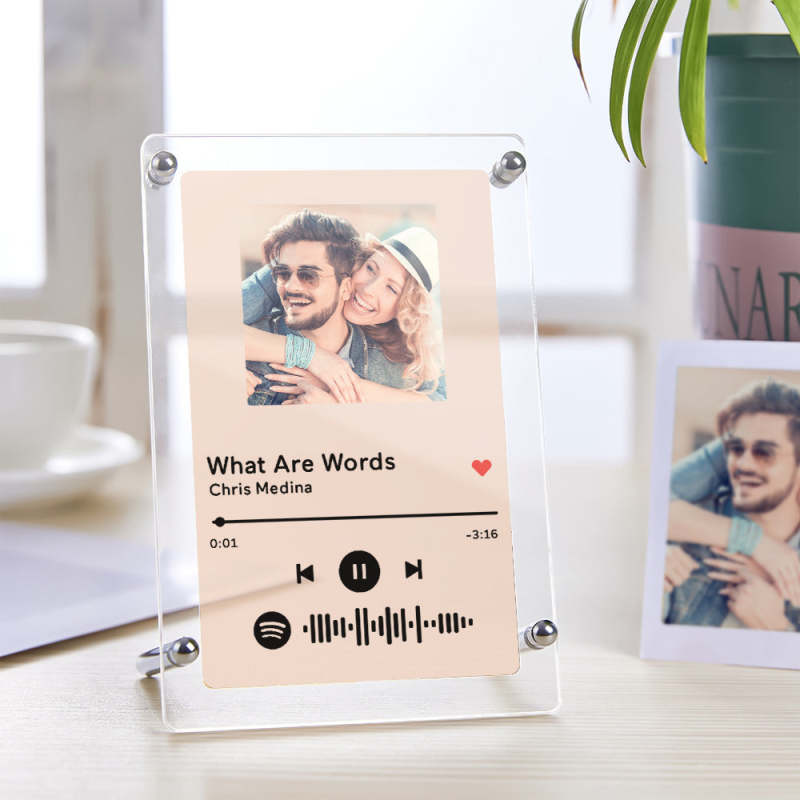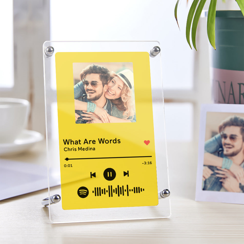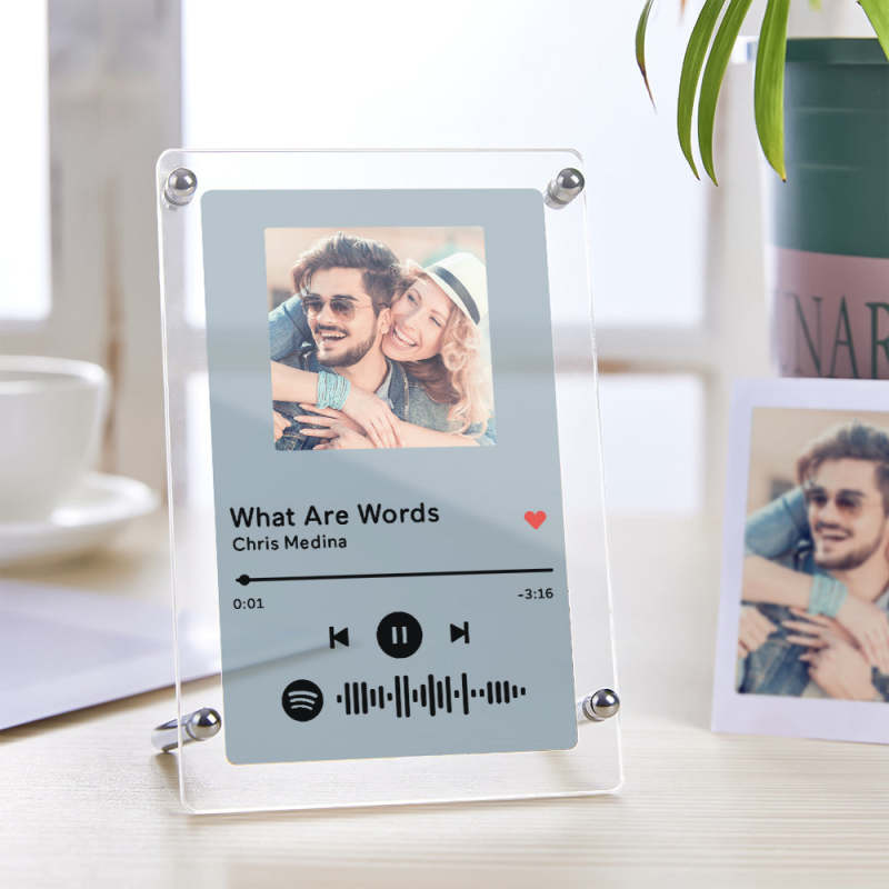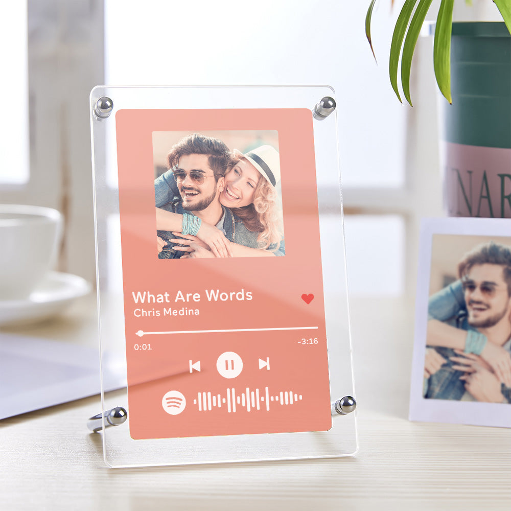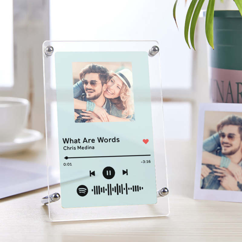 This unique acrylic plaque is a perfect gift for him/her on the anniversary. Custom the Spotify plaques. You can choose any song title, artist name, and favorite photos you want, all can be imprinted on the plaque, then you can generate a unique Spotify code. Please note that the acrylic plaque itself does not emit music. You have to scan the code on the Spotify app, after scanning the code on Spotify, your song will start playing immediately. On any memorable day, this is the most romantic gift, play the most beautiful music for your love.