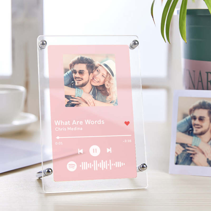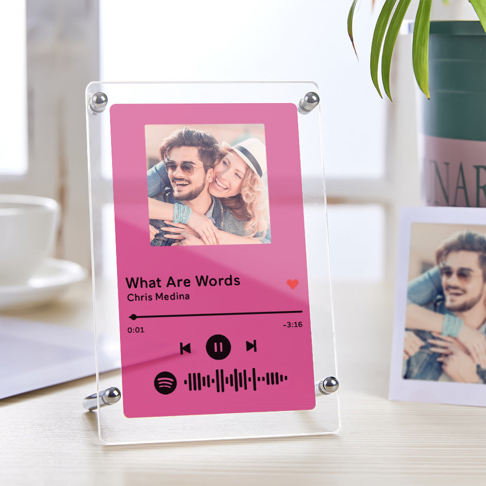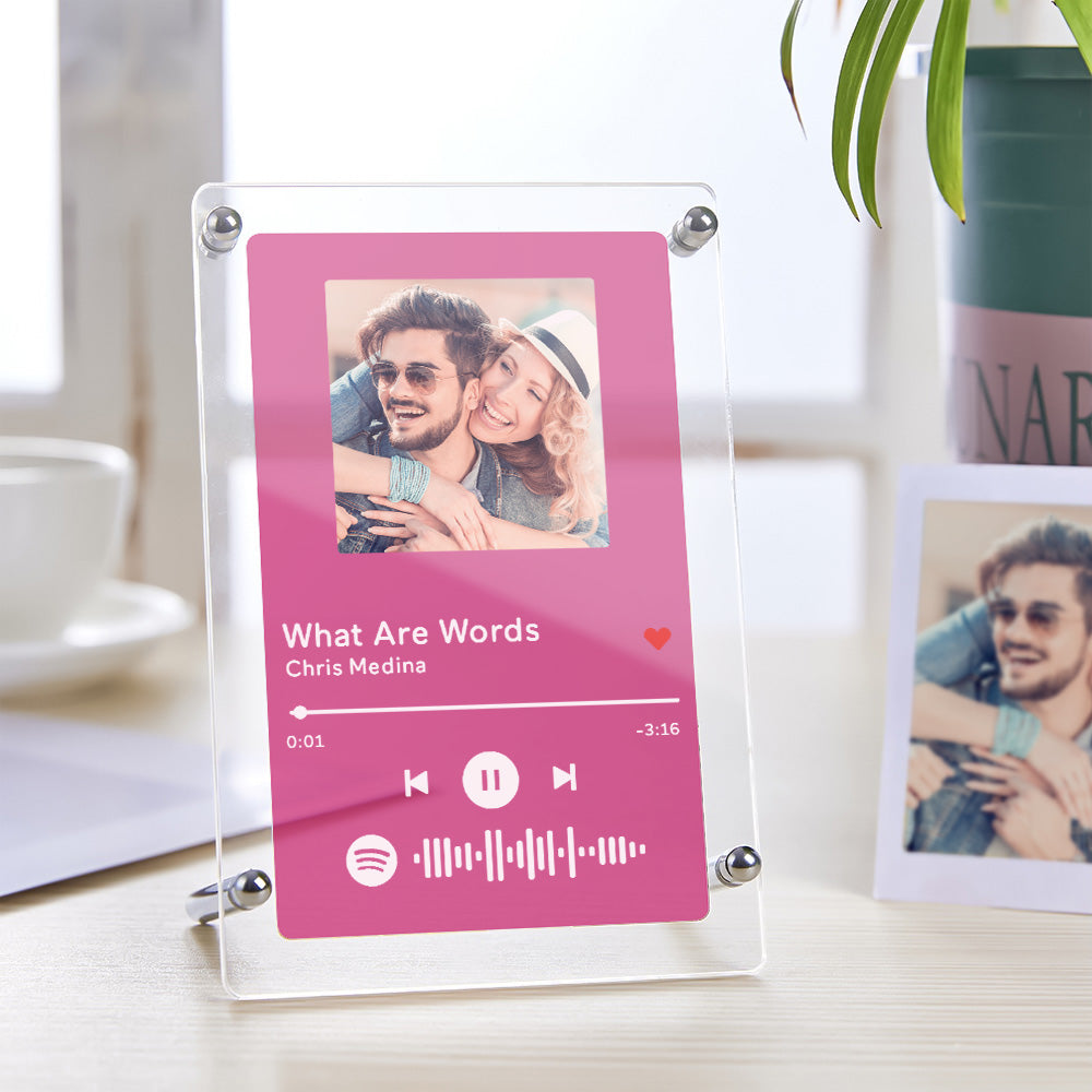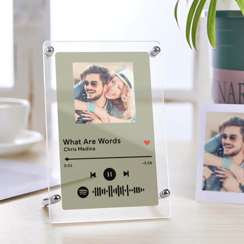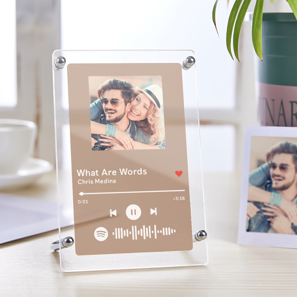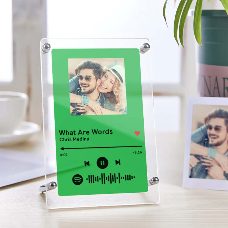 This unique acrylic plaque is a perfect gift for him/her on the anniversary. Custom the Spotify plaques. You can choose any song title, artist name, and favorite photos you want, all can be imprinted on the plaque, then you can generate a unique Spotify code. Please note that the acrylic plaque itself does not emit music. You have to scan the code on the Spotify app, after scanning the code on Spotify, your song will start playing immediately. On any memorable day, this is the most romantic gift, play the most beautiful music for your love.
