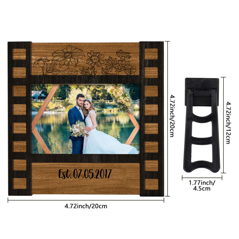 Capture memories forever in a timeless design with this film sign frame! You can put your wedding photo and custom text or date on it and turn your precious memories into the most stunning keepsakes for you. An ideal present to your significant other, best friends, and more.