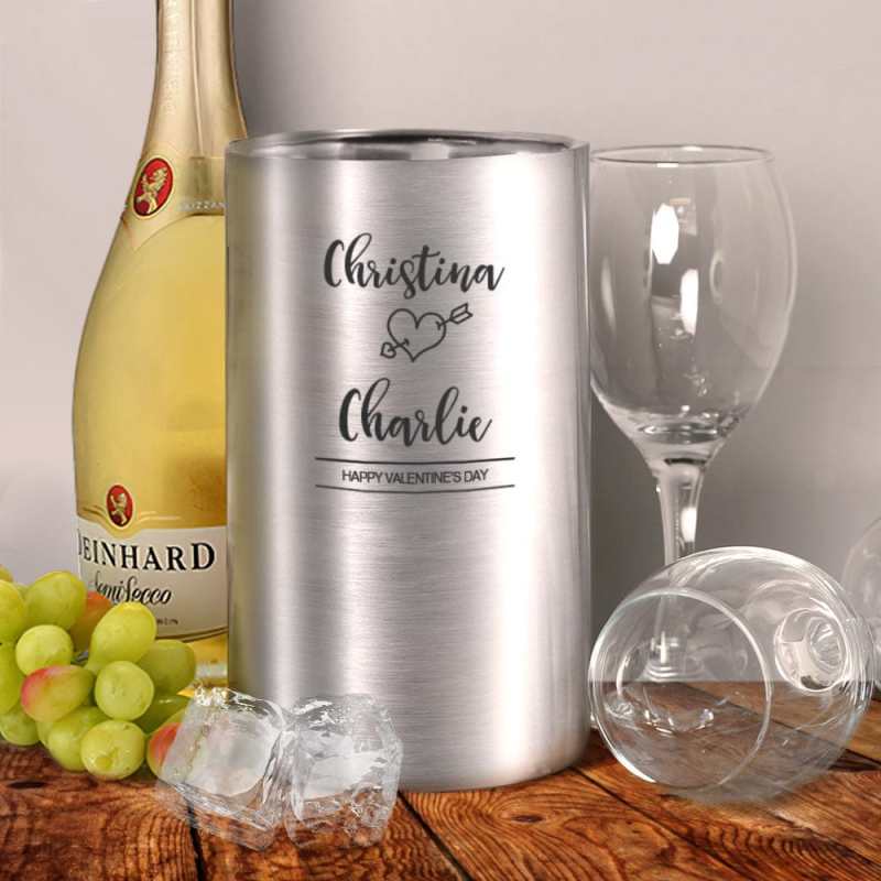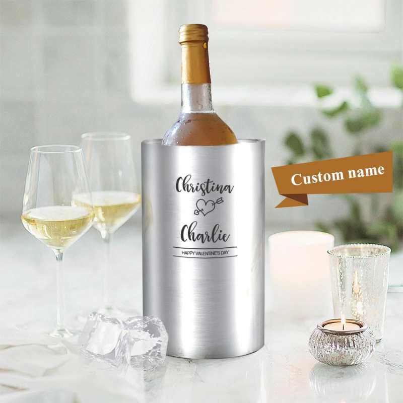 Custom Wine Chiller Engraved Name Stainless Steel Wine and Champagne Bucket For Valentines Gift