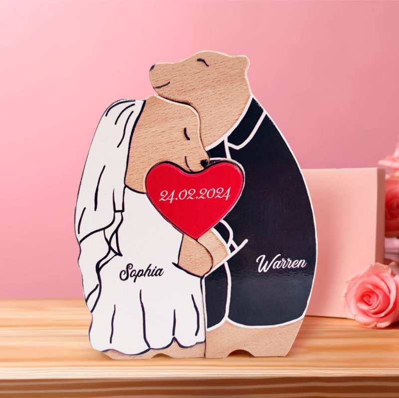 Personalized Wooden Bear Custom Couple Names Puzzle Unique Valentine's Day Gifts