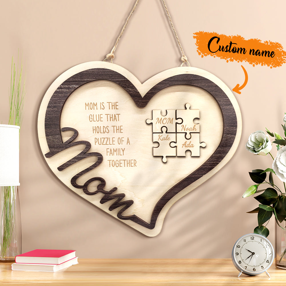 Personalized Wooden Heart Puzzle Sign Mother's Day Gift for Mom