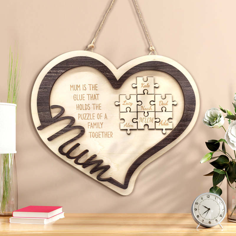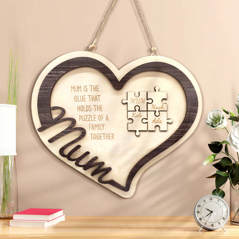 Personalized Wooden Heart Puzzle Sign Mother's Day Gift for Mum
