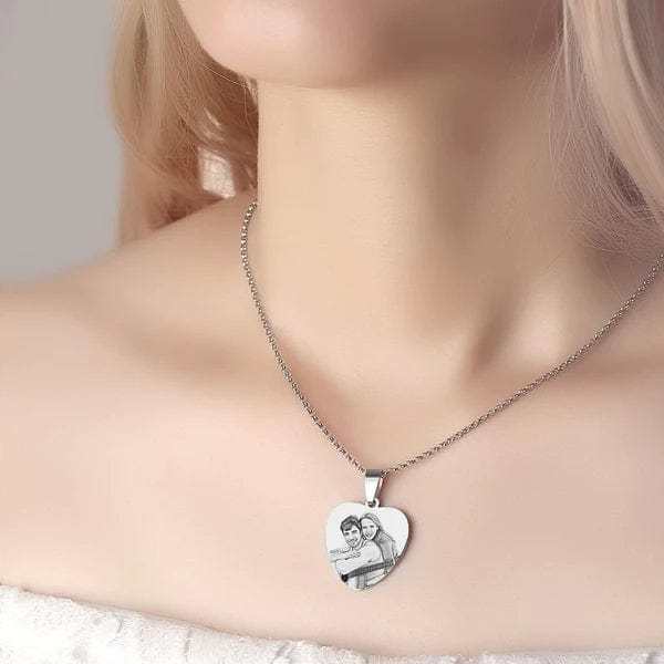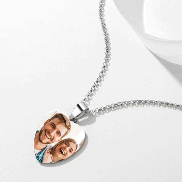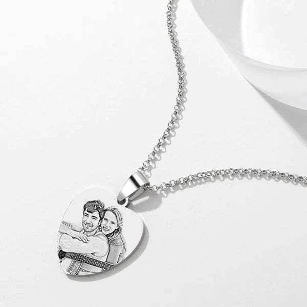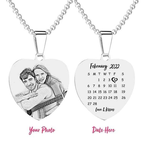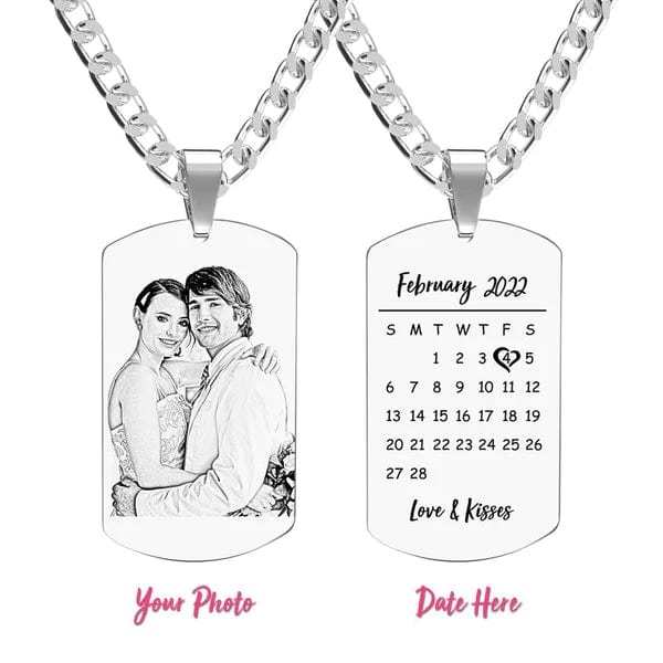 Photo Engraved Necklace with Date Custom Necklace Gift For Couple