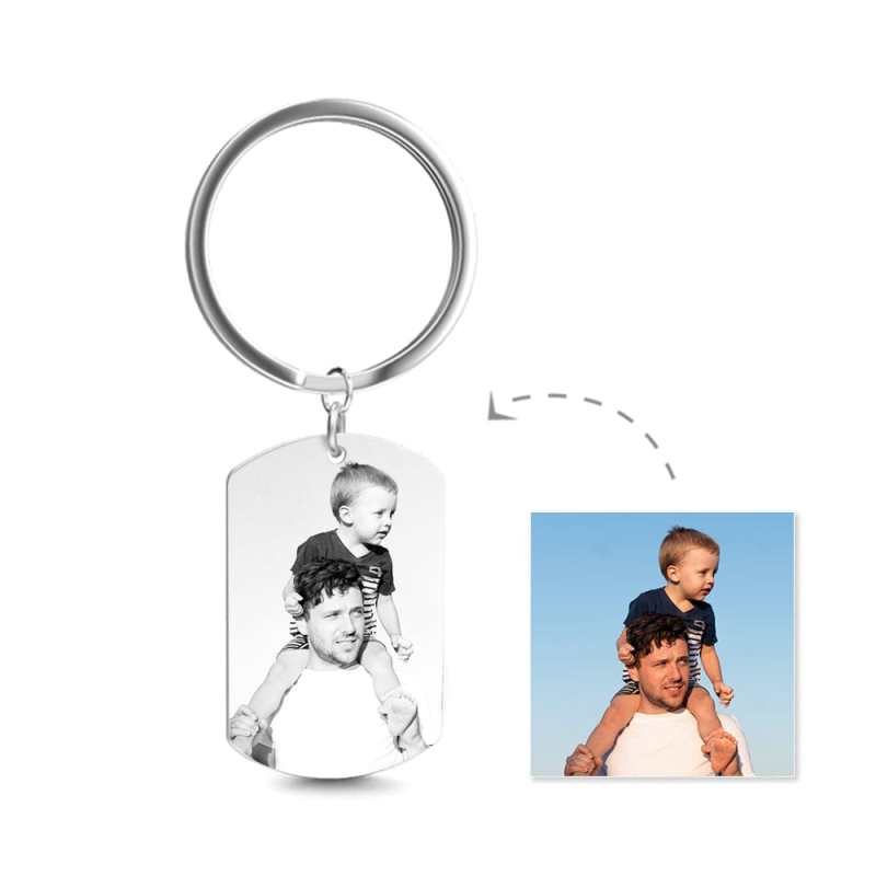 Photo Engraved Tag Key Chain Stainless Steel Photo Keychain Gifts for Dad