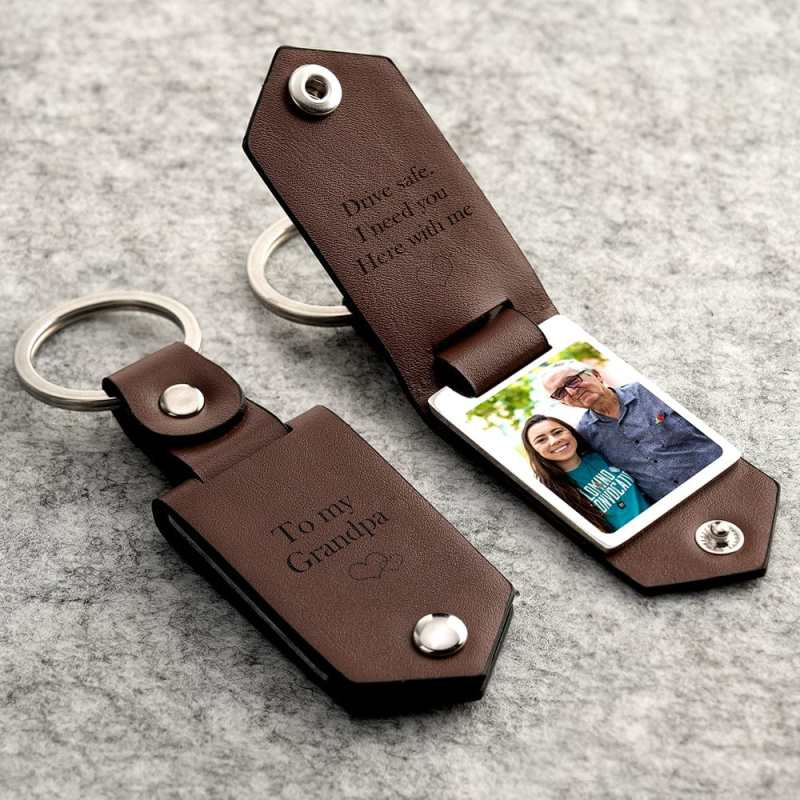 Drive Safe Keychain for Grandpa Custom Leather Keyring with Text Gifts