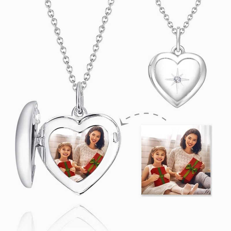 Photo Locket Necklace Gifts for Couple Platinum Plated Star Printing