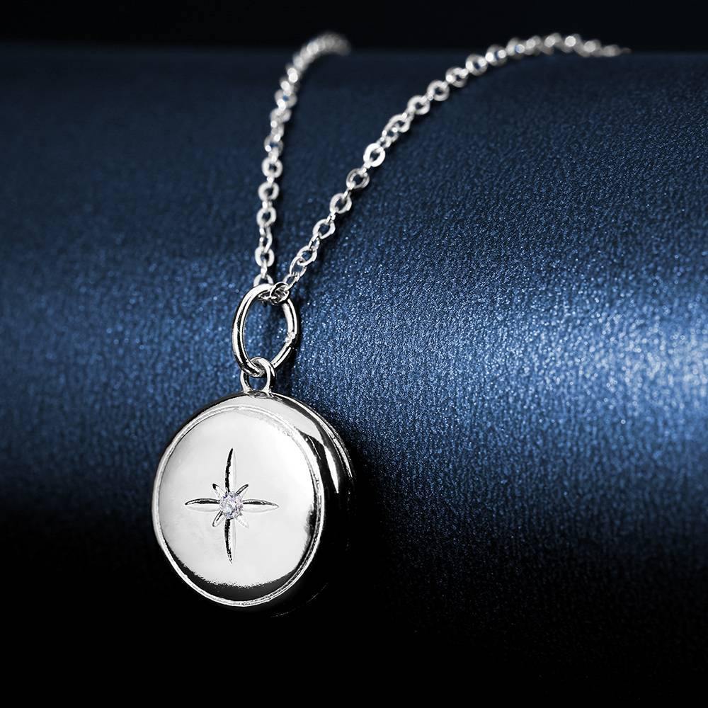 Photo Locket Necklace Gifts for Her Platinum Plated Star Printing