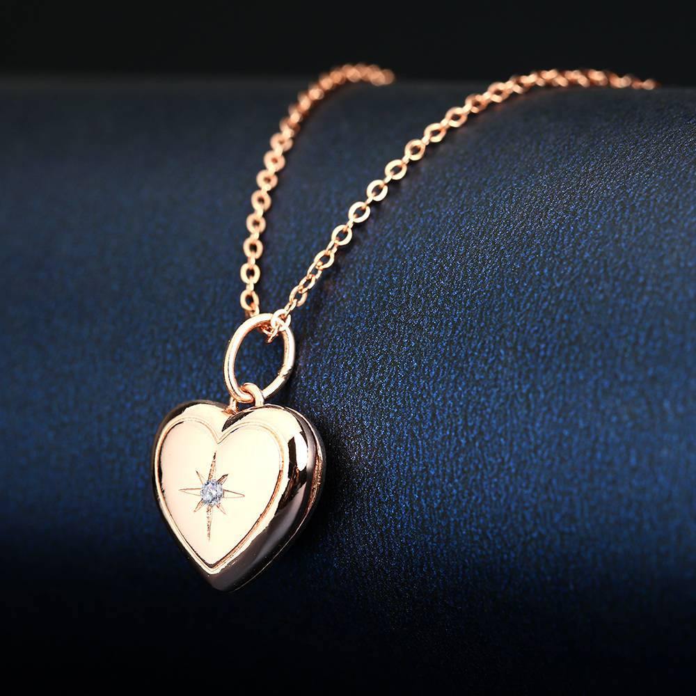 Photo Locket Necklace Gifts for Her Star Printing Rose Gold Plated