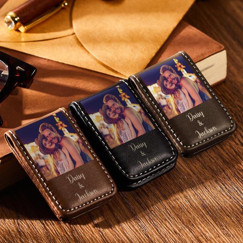 Photo Money Clip Magnetic Leather With Photo And Name Anniversary Gifts
