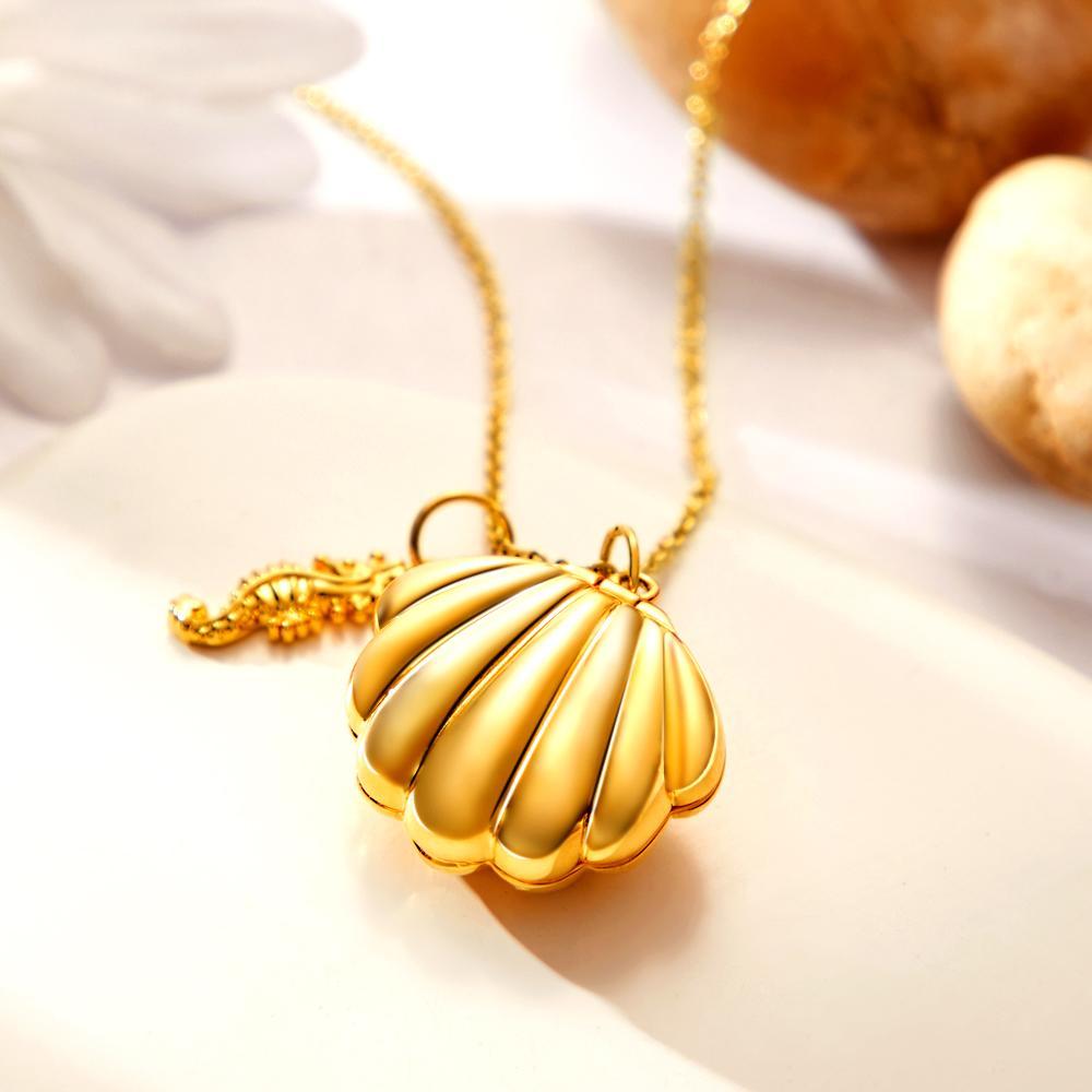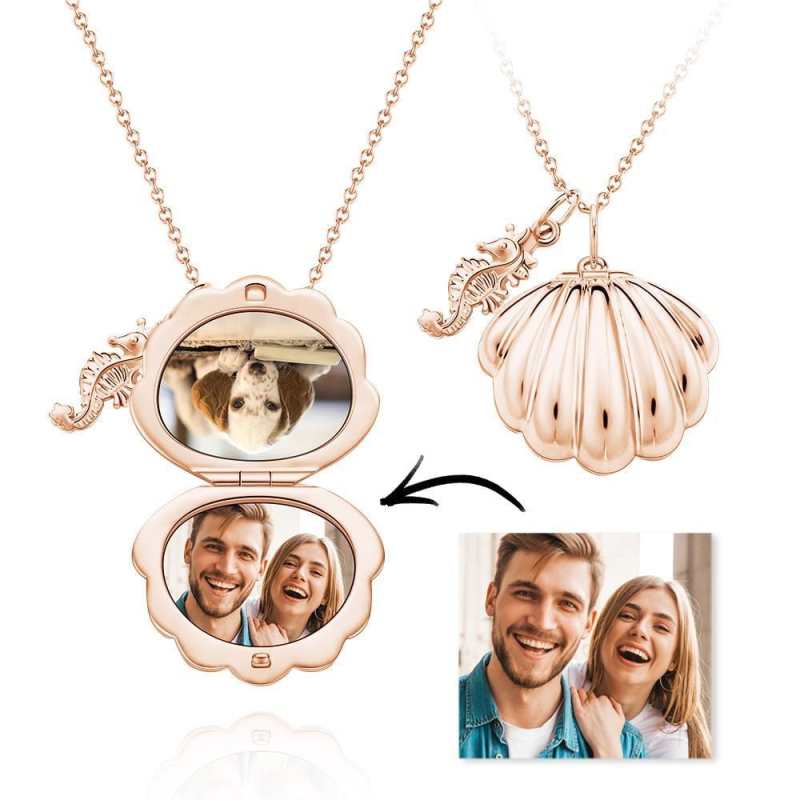Photo Necklace Gift for Her Double-sided Custom Seashell Necklace Seahorse Locket