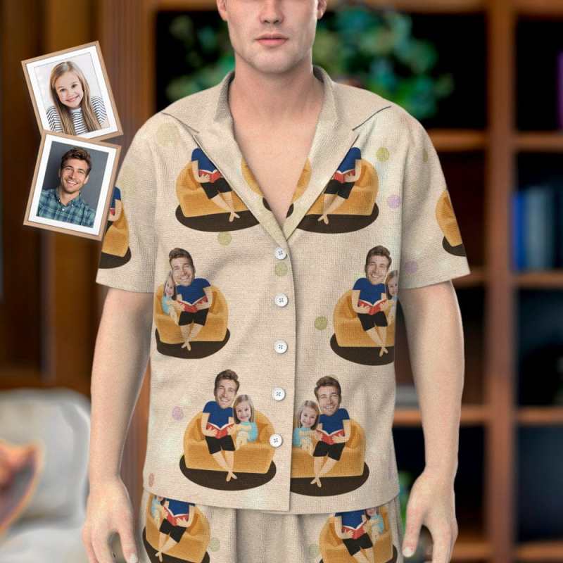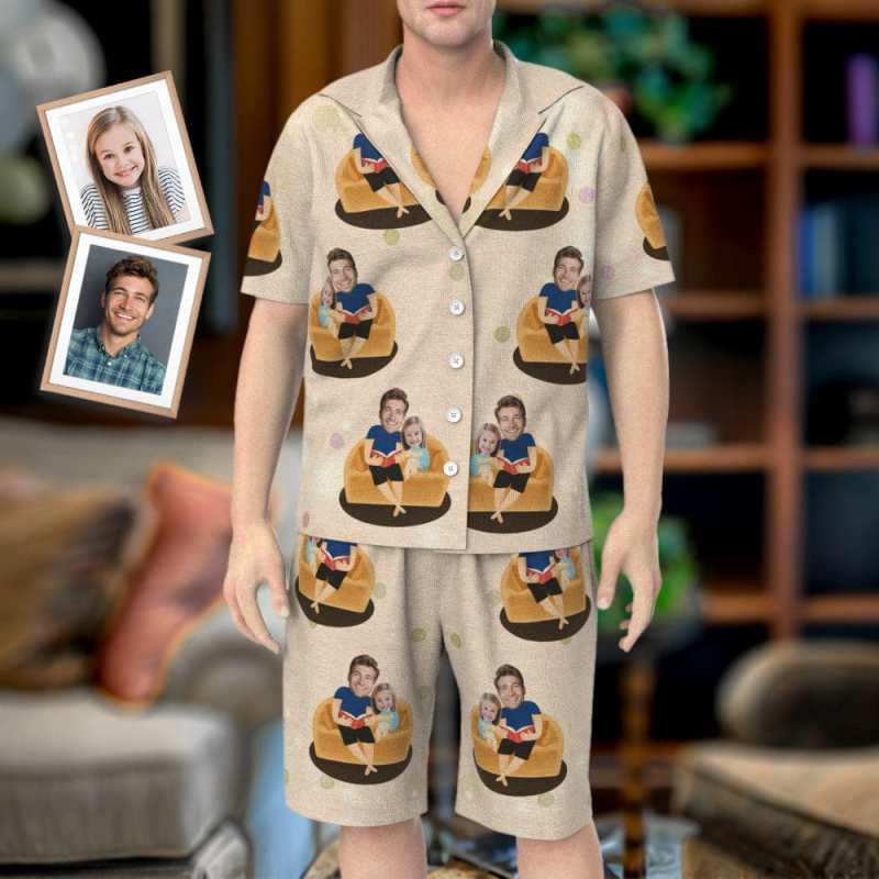 Photo Pajamas Set Dad and Daughter Reading Pajamas Personalized Father's Day Gift