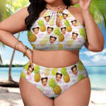 Plus Size Swimwear with Face High Waisted Bikini Swimsuit - Pineapple