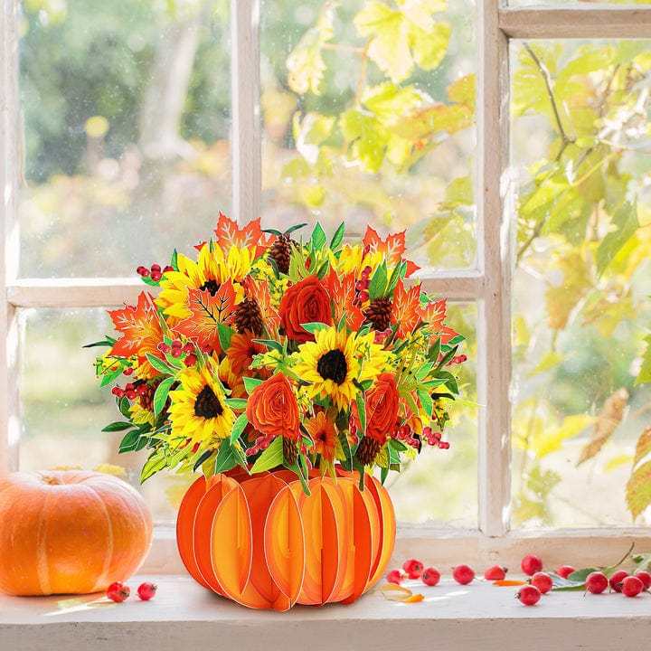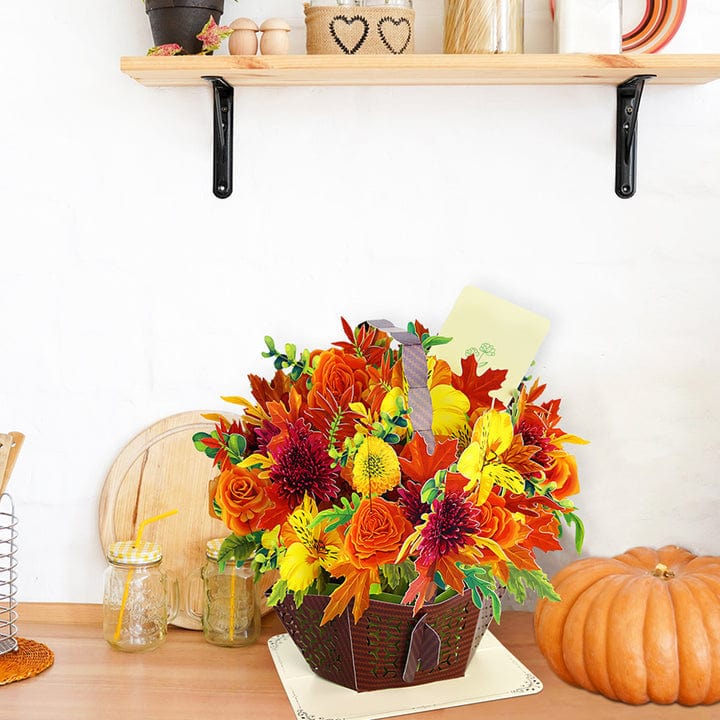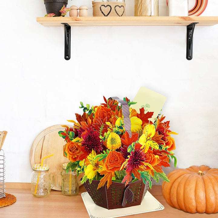 Pop up Card for Thanksgiving Best Wishes Flower Basket