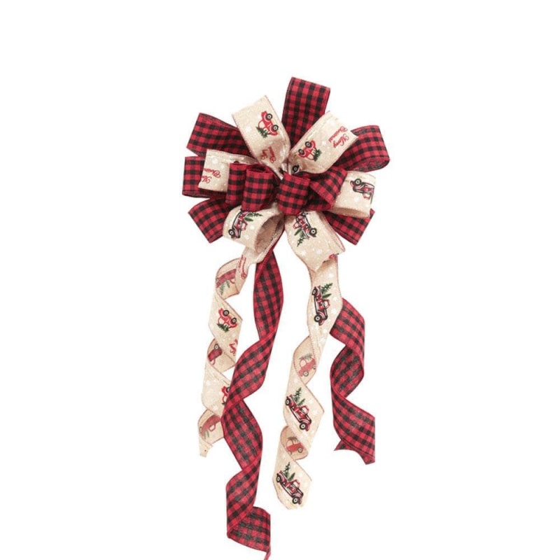 Christmas Tree Topper Bow Christmas Lattice Car Bows Ornament For Xmas Gift Bow