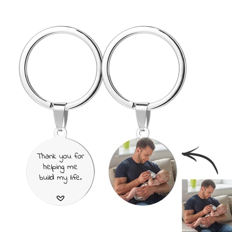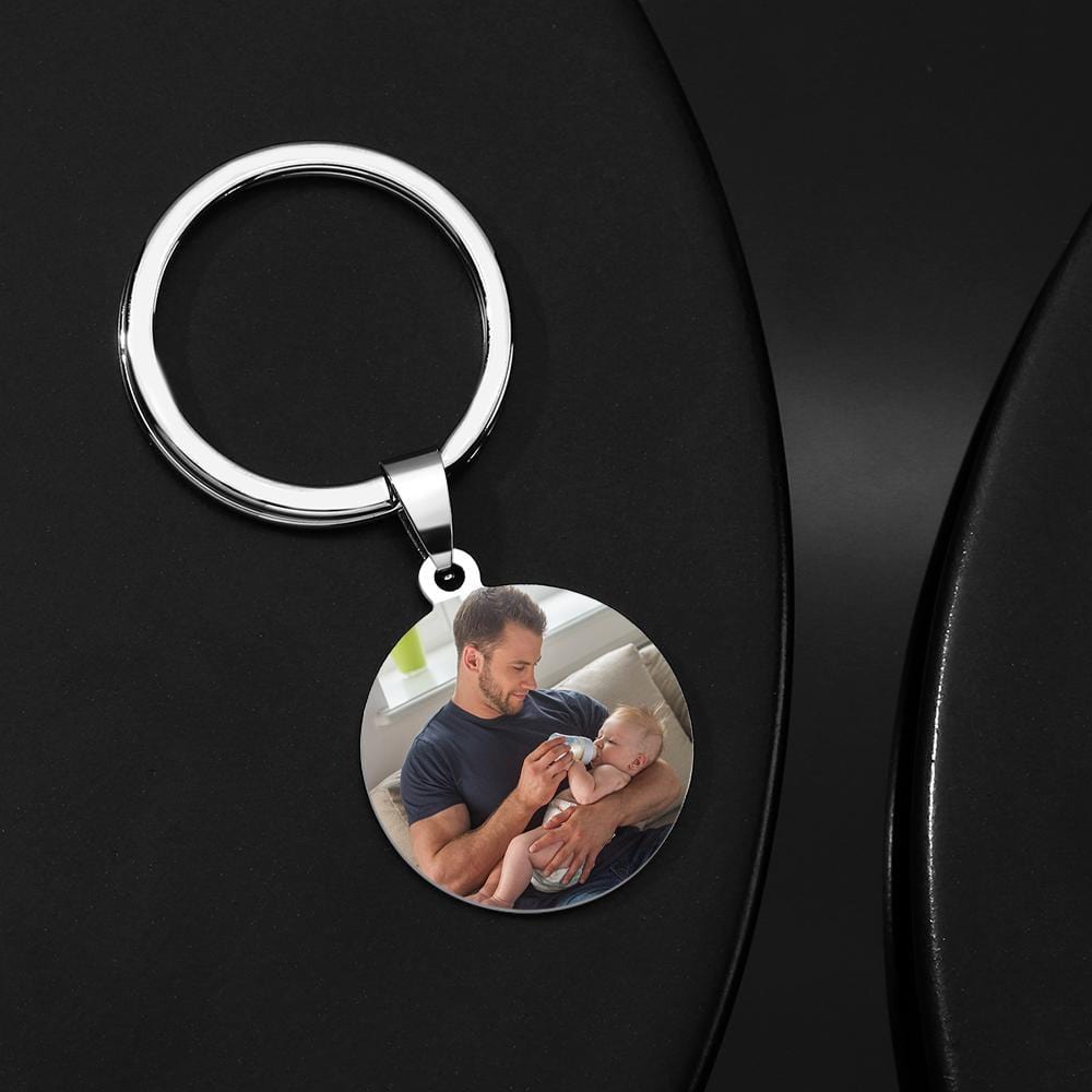 Round Tag Photo Keychain Keepsake Gifts for Daddy Stainless Steel Photo Keychain