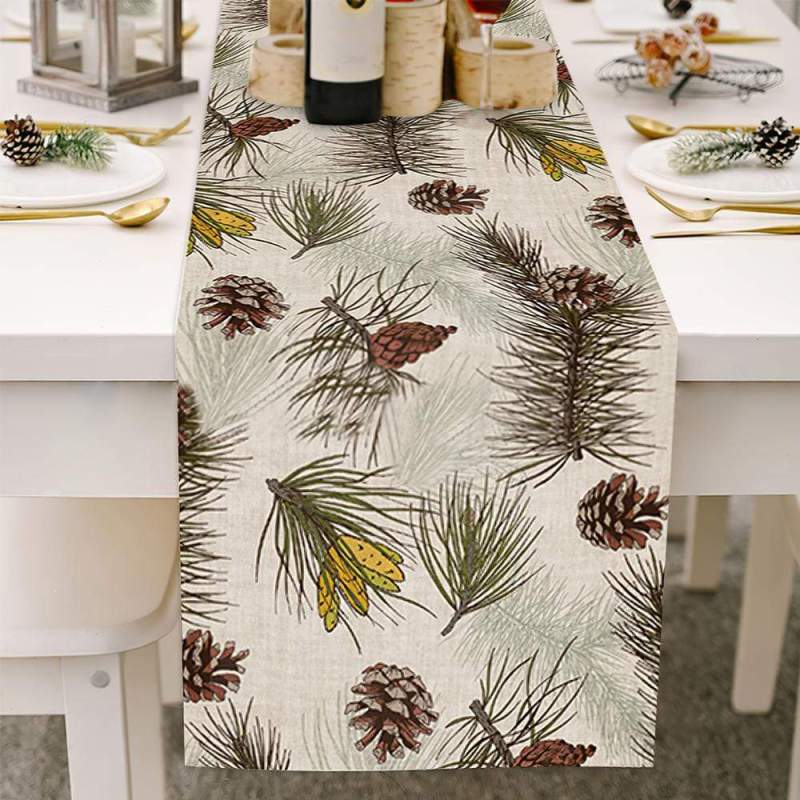 Rustic Christmas Table Runner With Pine Leaves Gifts for Mom