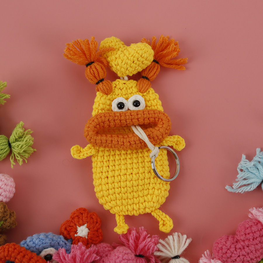 Crafted with love and soft, durable yarn, each piece is a one-of-a-kind creation. The ingenious sliding pull cord design lets you securely tuck your keys inside the cozy "mouth," protecting them from scratches and preventing them from jangling loudly in your bag. A simple tug on the cord, and your key pops right out, ready to use!