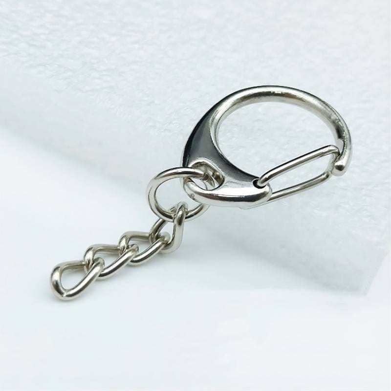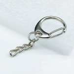 Small C-Shaped Buckle Key Ring Spring Snap Key Ring with Chain and Jump Ring Silver