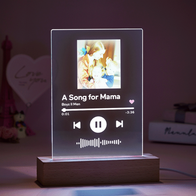 - Choose your favorite song/album and turn it into a beautiful custom song keychain, Plaque frame, keychain+Plaque frame, and night lamp.You can add a Spotify code! As soon as you scan the code on Spotify your song will instantly begin to play.You can automatically search for song titles and artists, and you can also choose to recommend songs.You can customize and upload the photos you designed, you can also choose the song album cover, we provide customers with free choice.Please note that these plaques are made with a clear acrylic sheet that ensures safety during transit and is much more durable than glass, they arenot made from acrylic.