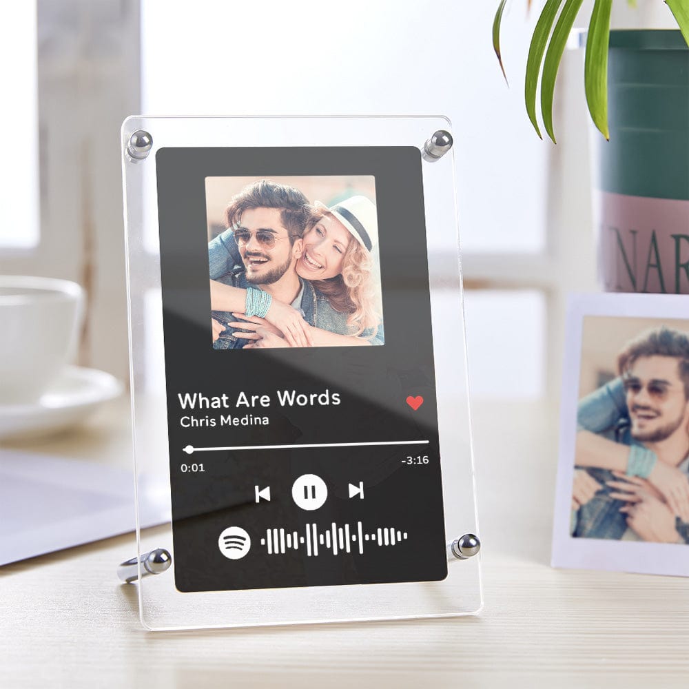 This unique acrylic plaque is a perfect gift for him/her on the anniversary. Custom the Spotify plaques. You can choose any song title, artist name, and favorite photos you want, all can be imprinted on the plaque, then you can generate a unique Spotify code. Please note that the acrylic plaque itself does not emit music. You have to scan the code on the Spotify app, after scanning the code on Spotify, your song will start playing immediately. On any memorable day, this is the most romantic gift, play the most beautiful music for your love.