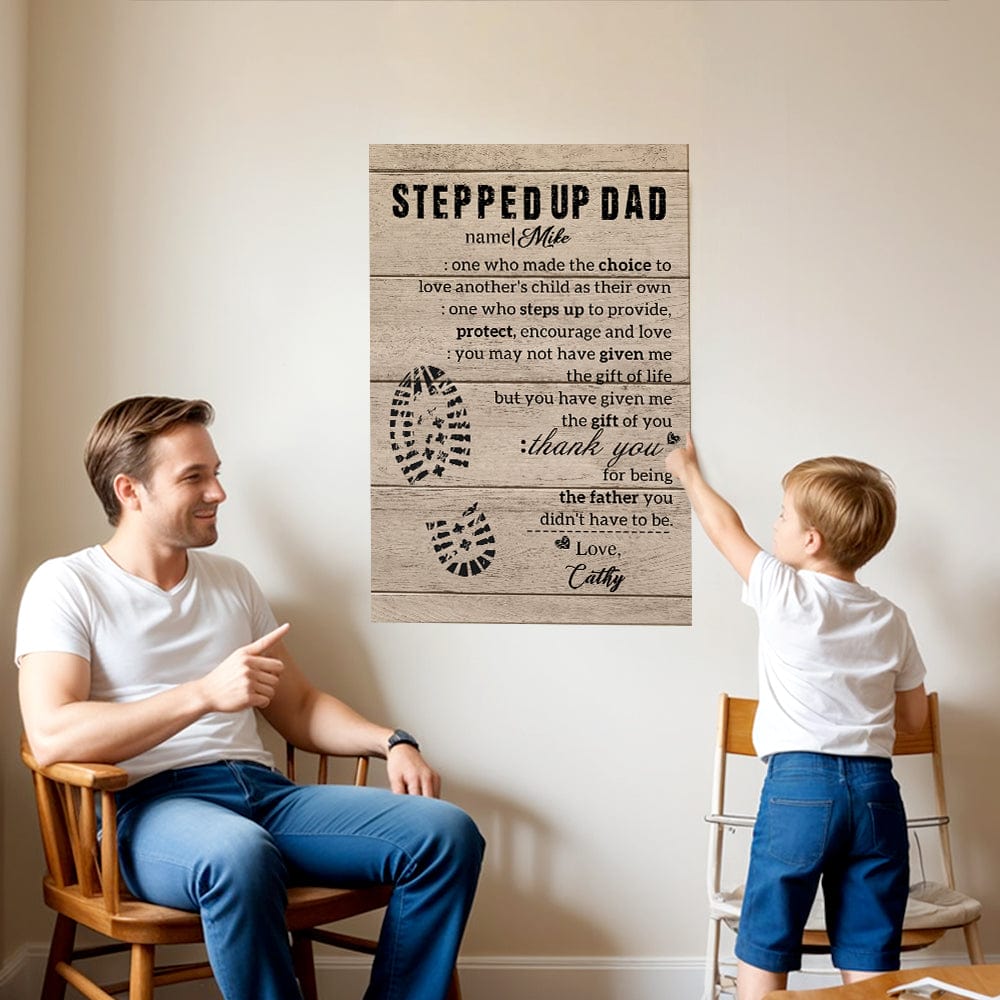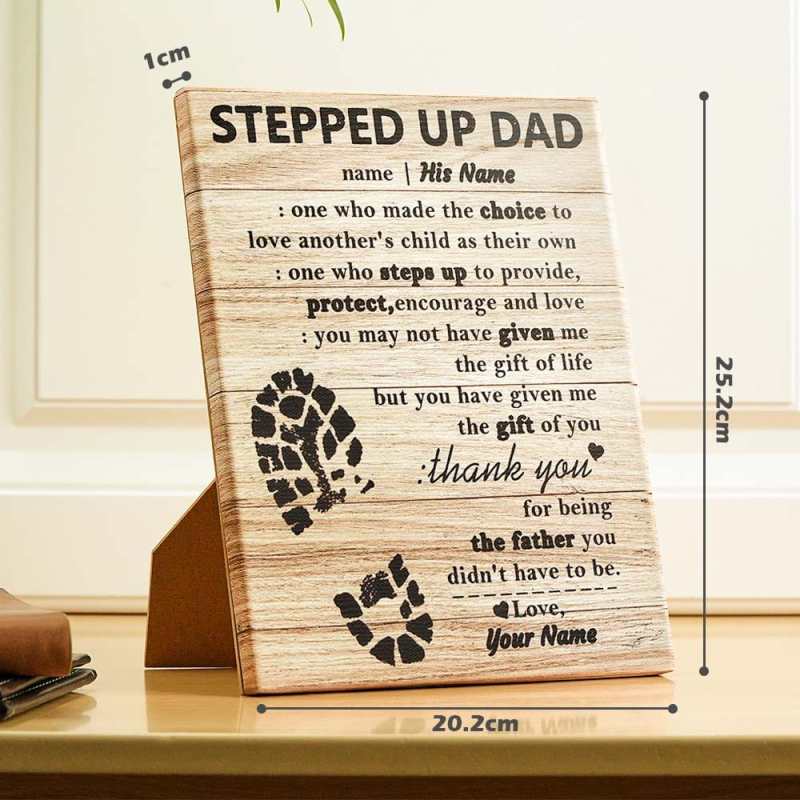 Custom Stepped Up Dad Frame Personalized Easel-Back Gallery Wrapped Canvas Unique Gifts for Fahter's Day