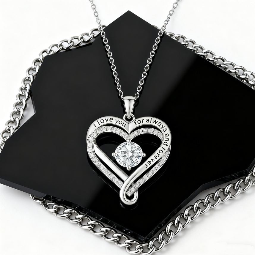 The necklace features a brilliant heart outline paired with a central shimmering stone, delivering an eye-catching sparkle that complements both everyday wear and special occasions. Paired with a beautifully printed message card reading “To My LOVE – Forever & Always,” it becomes more than jewelry; it becomes a heartfelt reminder of your promise, your connection, and your commitment.