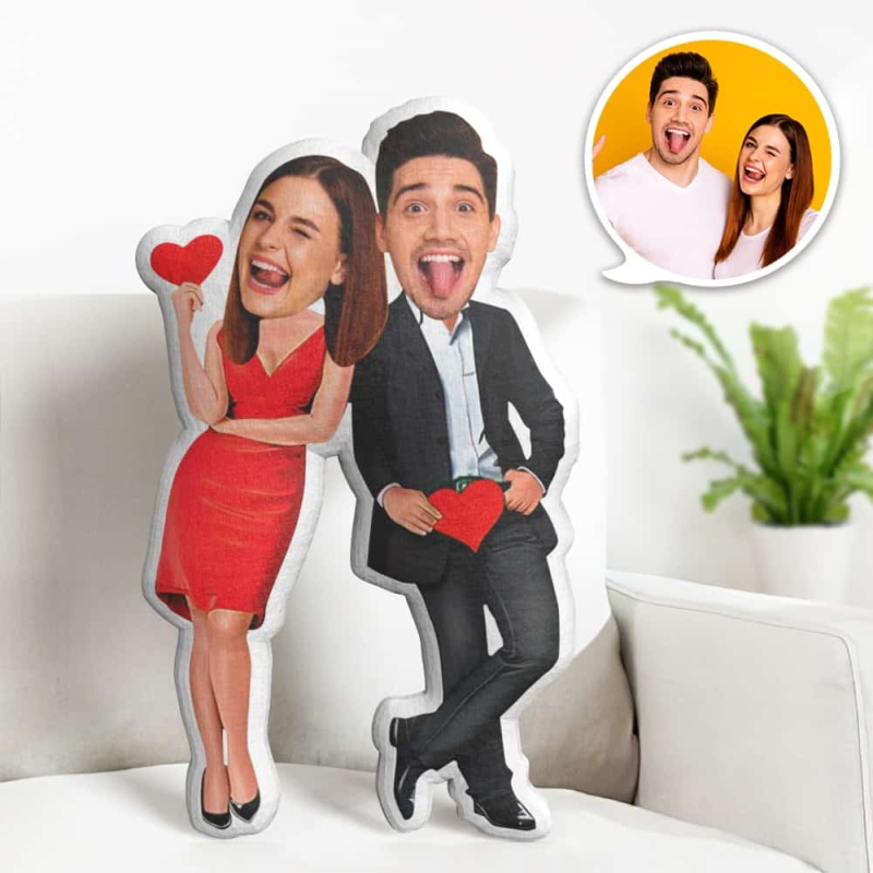 Valentine's Day Gift Custom Face Pillow, Couple with Heart Face Doll, the Best Gift for Lover