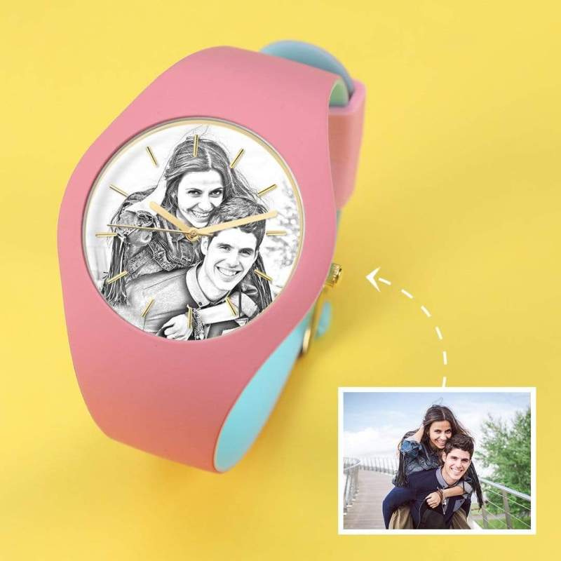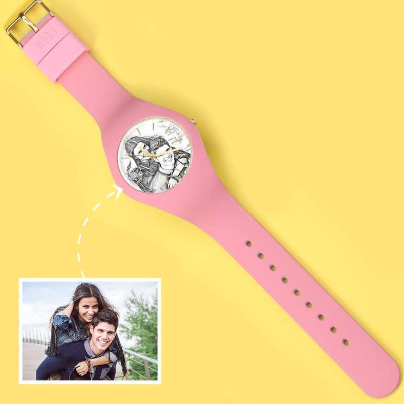 Anniversary Gift Custom Engraved Watch - Pink Silicone