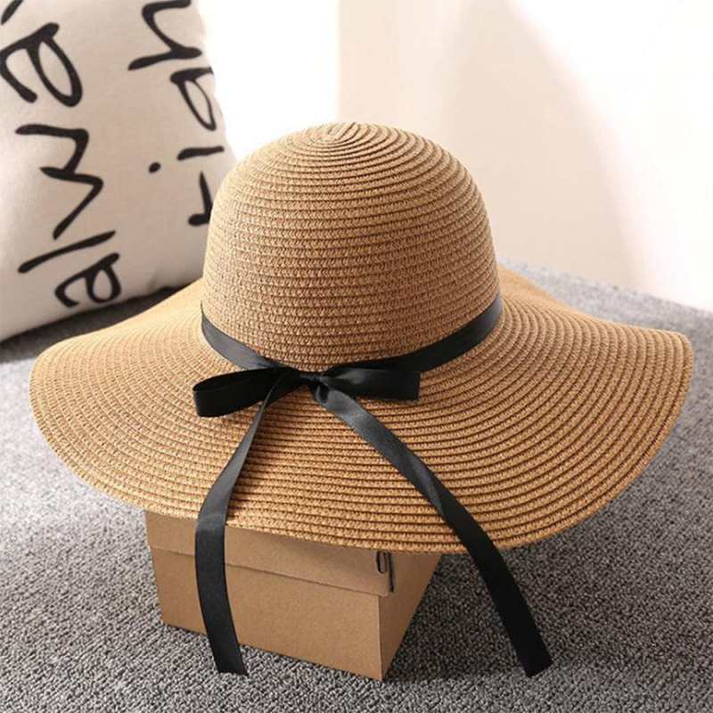 Women Straw Hat Beach Wide Brim Bow-Knot Big Floppy Folding Sun Hat