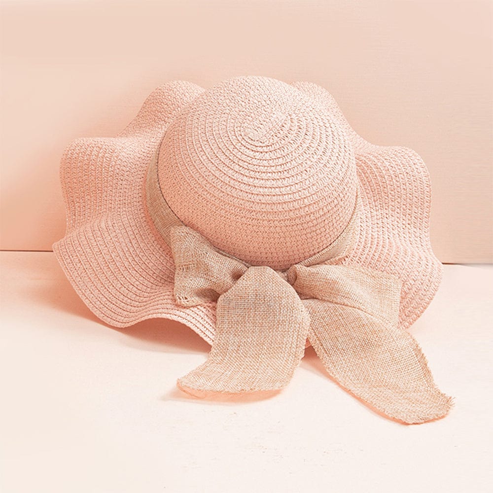 Women Straw Hat Beach Wide Brim Bow-Knot Floppy Folding Sun Hat