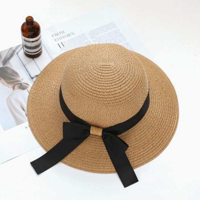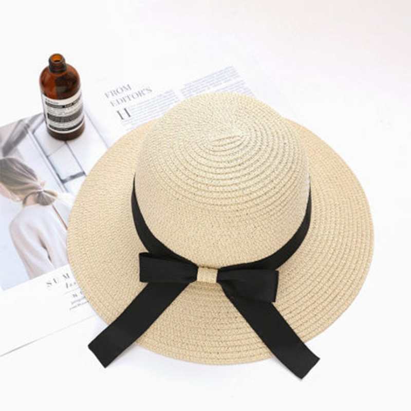 Women Sun Protection Straw Hat Beach Wide Brim Bow-Knot Big Floppy Folding Sun Hat