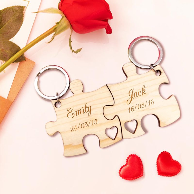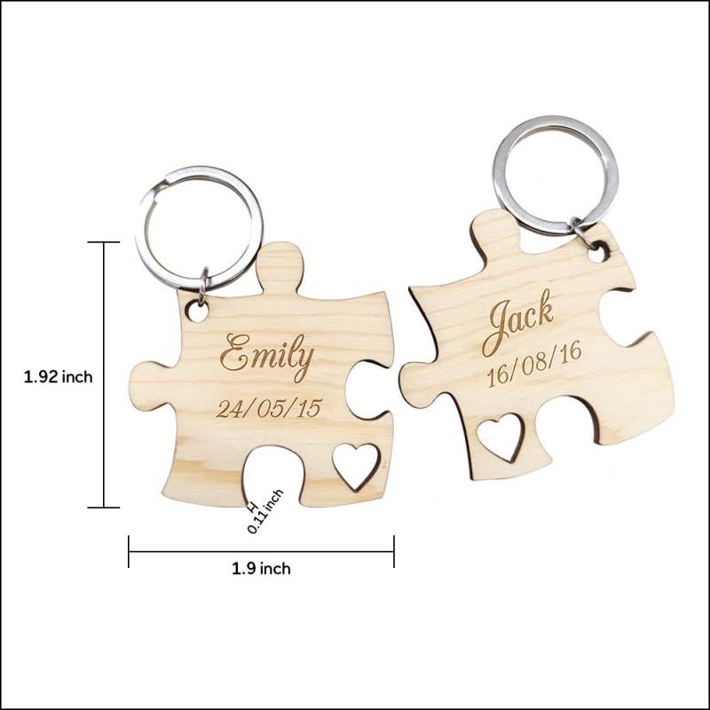 This is a lovely personalized keychain, including two puzzle parts keychains. Personalize your special keychain to your lovers. Carve your date and name on it. Take the keychain with you and you will feel connected to him. This will be the best gift for Valentine's day.