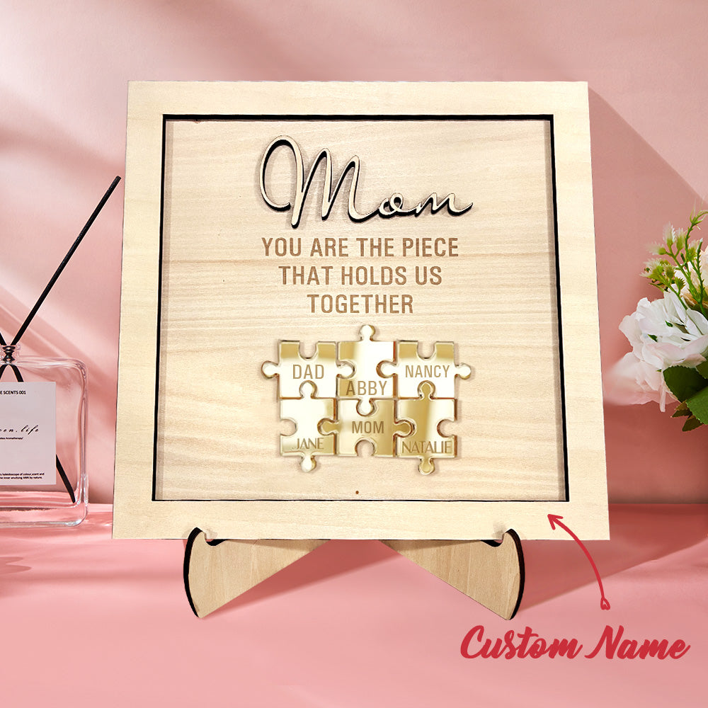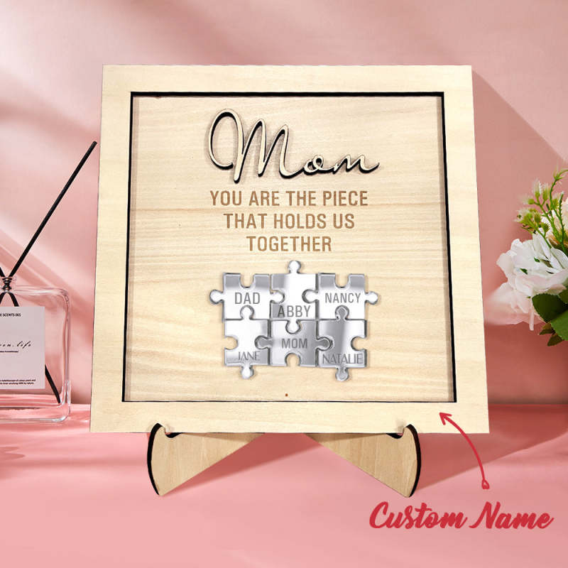 You Are the Piece That Holds Us Together Personalized Mom Puzzle Plaque Mother's Day Gift